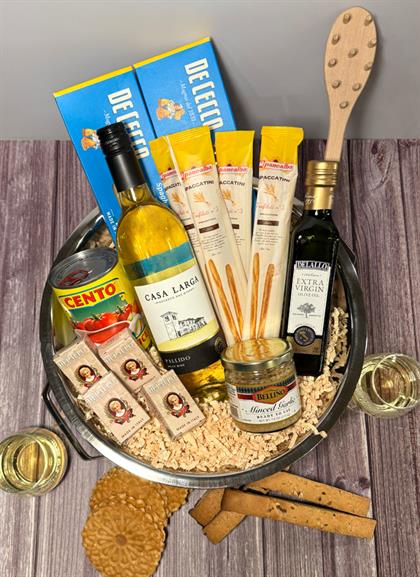 Everything you need for a perfect pasta night for four, beautifully presented in a stainless-steel colander. This gift pairs Casa Larga’s Pallido Estate White Wine with gourmet ingredients and treats for a complete, memorable dining experience.
